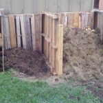 I decided to build a three bin system to allow for the amount of compost I will need over the years. So far two bins are constructed and a third will be added next year as I need it. The idea is that during the growing months, you add green and brown matter to the first bin. This bin fills up over a year and then you repeat on the second bin (repeat again the third year). After two years you will have dark, rich soil that can be used. I built my first two bins from old pallets donated by a local electrical company that just ‘throws them away’ and leftover scraps from the playhouse construction just completed. The bins only have to look as good as you want them to look. There should be air gaps left to allow for the materials to get needed oxygen. I allowed for enough space in the bins to hopefully hold a years worth of garden and kitchen scraps.