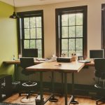 My office space is generous enough for a meeting table in addition to my desk. The wall behind is a dry erase board using Sherwin Williams system.